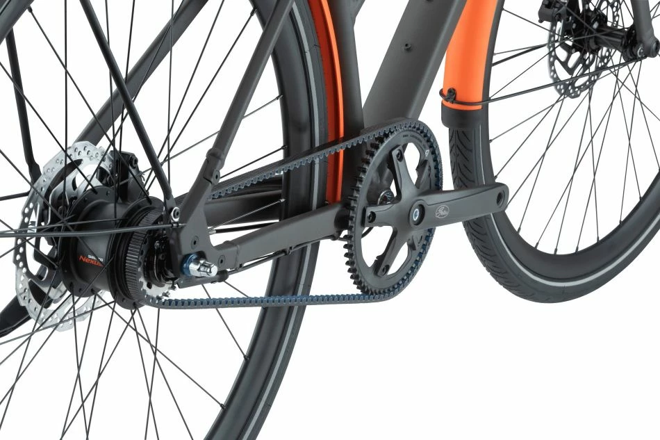 Das 257 Three/ Three ST ist mit einem Riemenantrieb und einer Nabenschaltung ausgestattet. Wartungsfrei und langlebig. Riemenantriebe und Nabenschaltungen werden durch Regen, Schnee und Schmutz kaum beeinflusst und sorgen so für zuverlässige Funktion und wenig Wartungsarbeit. Mehr Zeit, um deine Fahrt auf dem 257 zu geniessen.